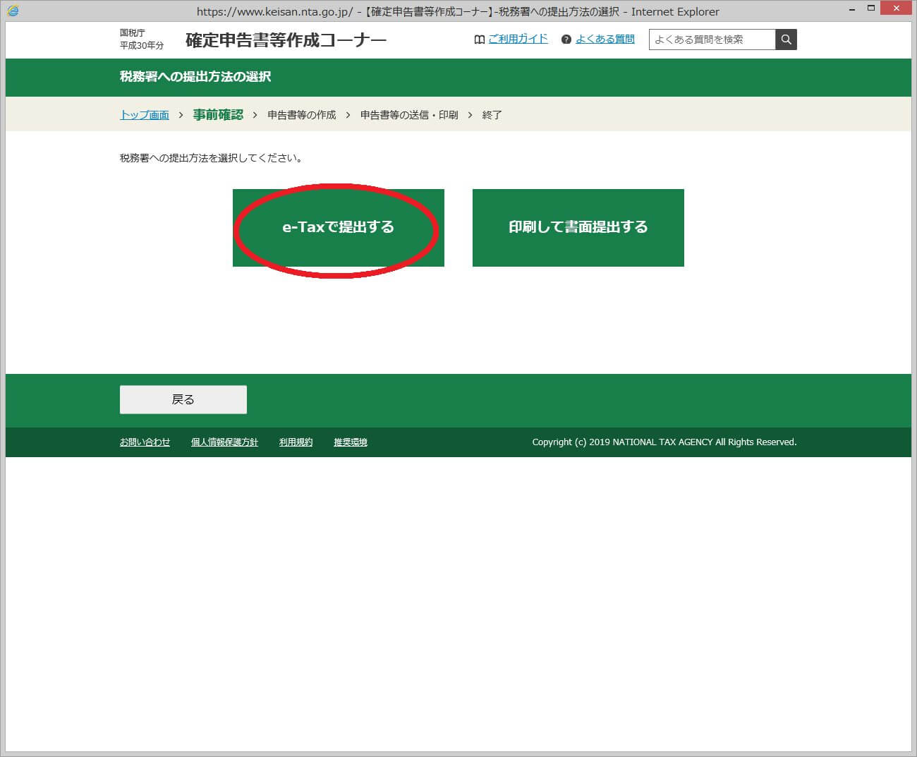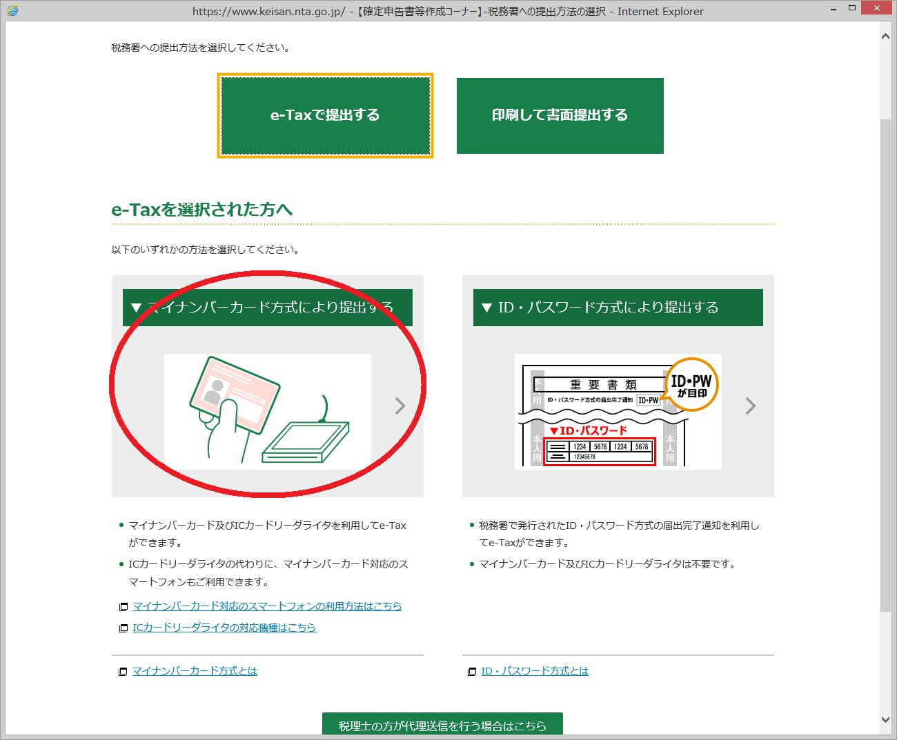 - 「マイナンバーカード方式により提出する」を選択マイナンバーカード用の4桁の暗証番号を問われますので、入力します。
