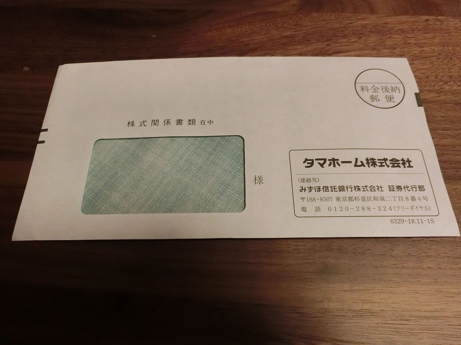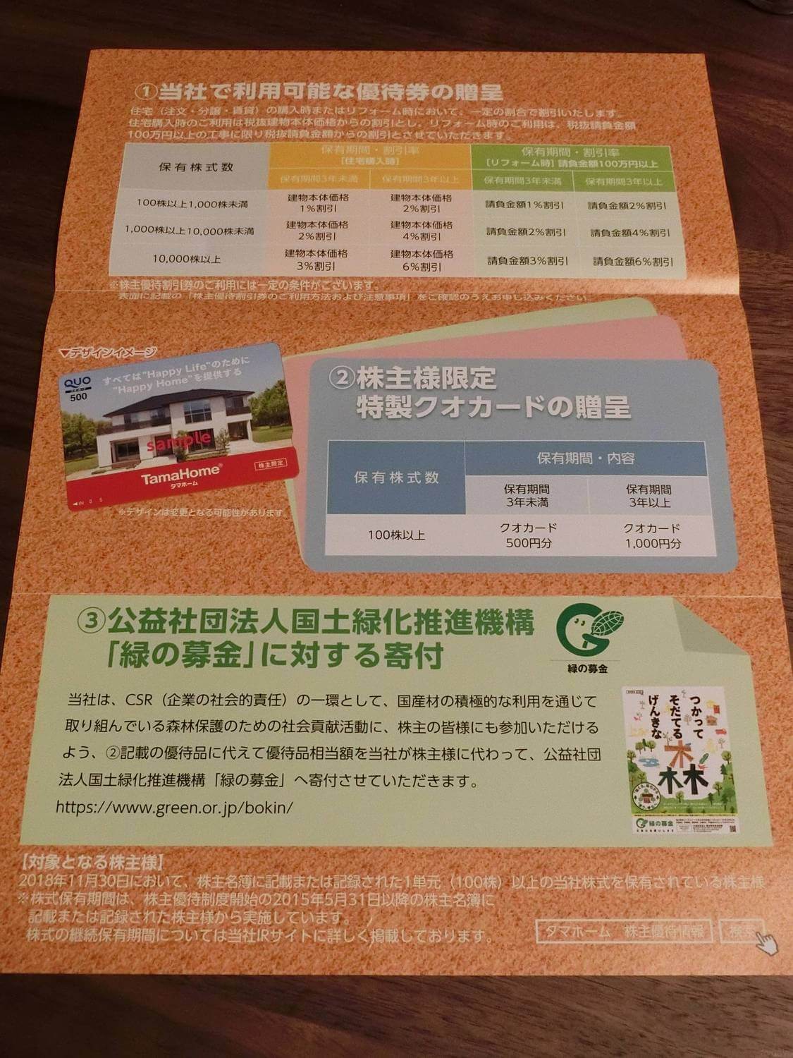 CMでもおなじみのタマホームの株主優待の選択書類が到着しました。