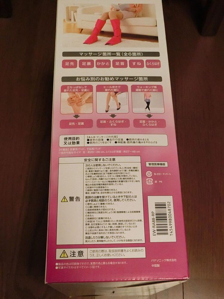 今回、購入したのは、足先~ふくらはぎまでの、EW-RA88を購入しました。