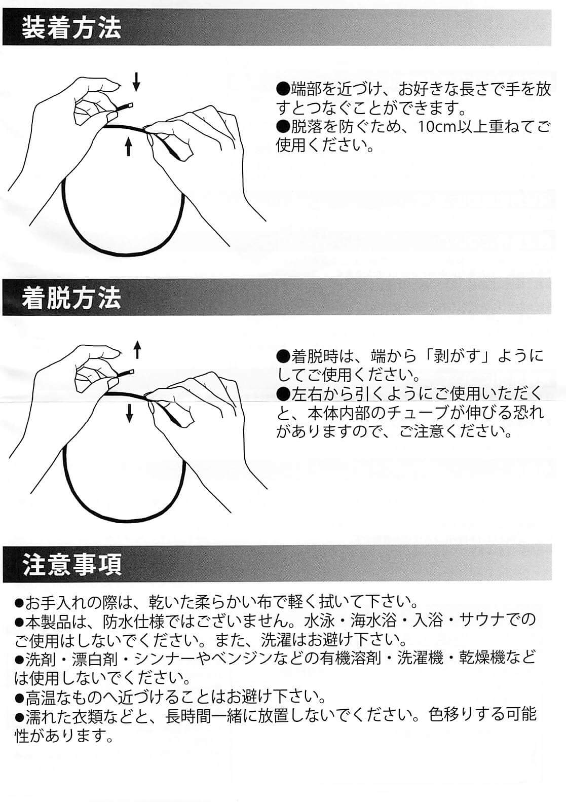 5cmも重なっていれば十分な強度を持っています。少し心もとないですが、3cm程度でも問題ありませんでした。逆につなぎ目を大きく(長く)すると首元が細い方でもちょうどいい大きさにすることができます。