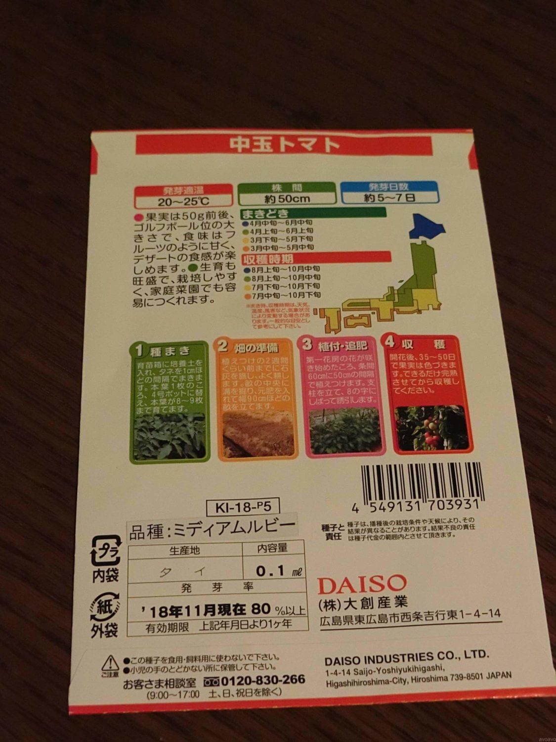 百均のプチトマトのタネ、なんと、2個で100円(税抜)です。