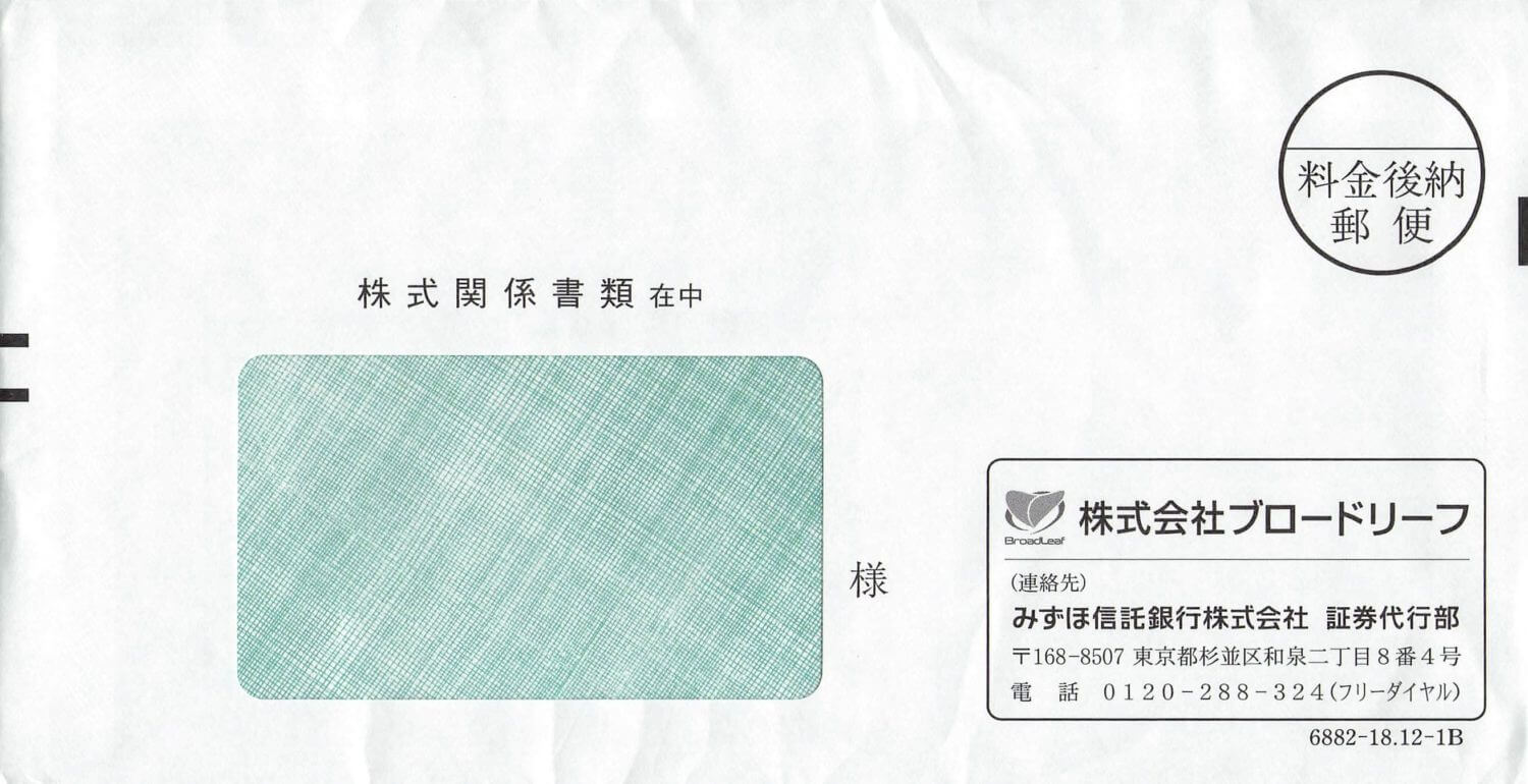 タマホーム、ブロードリーフの株式書類・配当金通知書が到着!