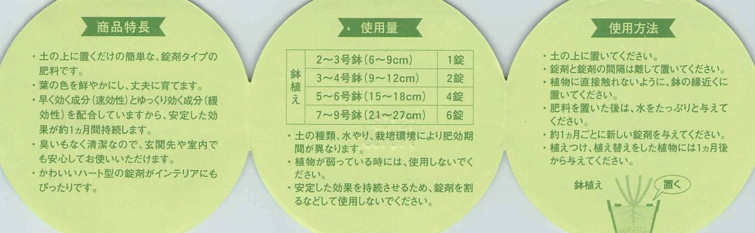 | 5~6号鉢(15~18cm) | 4錠 |