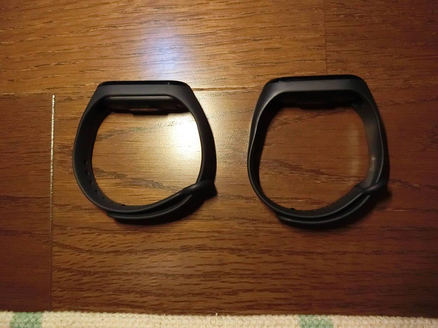 上から見てもそれほど分かりません。(以下、左:Mi Band 3、右:Mi Band 4