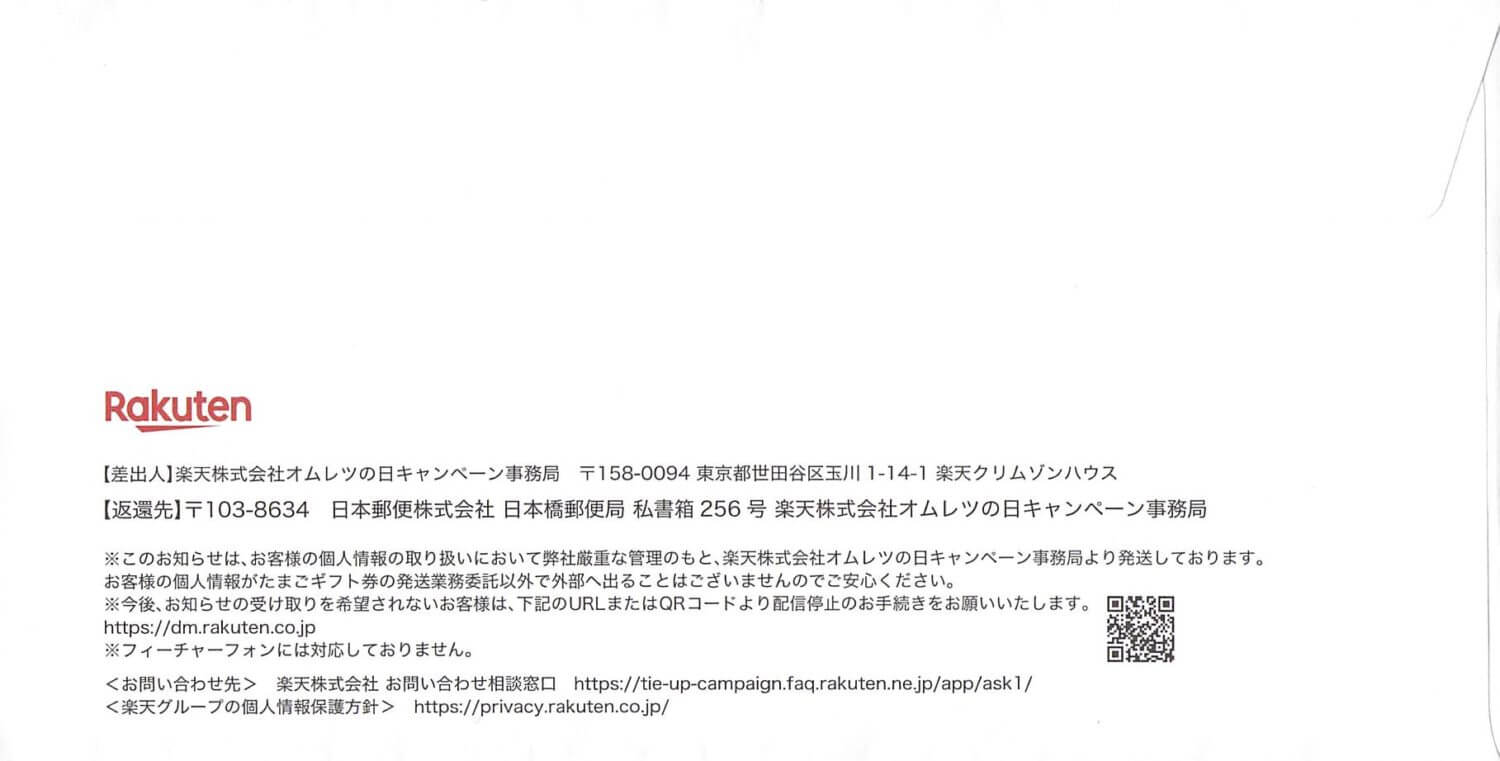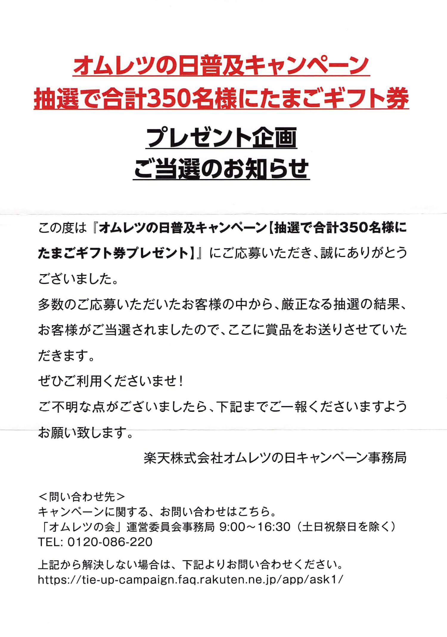 楽天株式会社オムレツの日キャンペーン事務局から届いています。