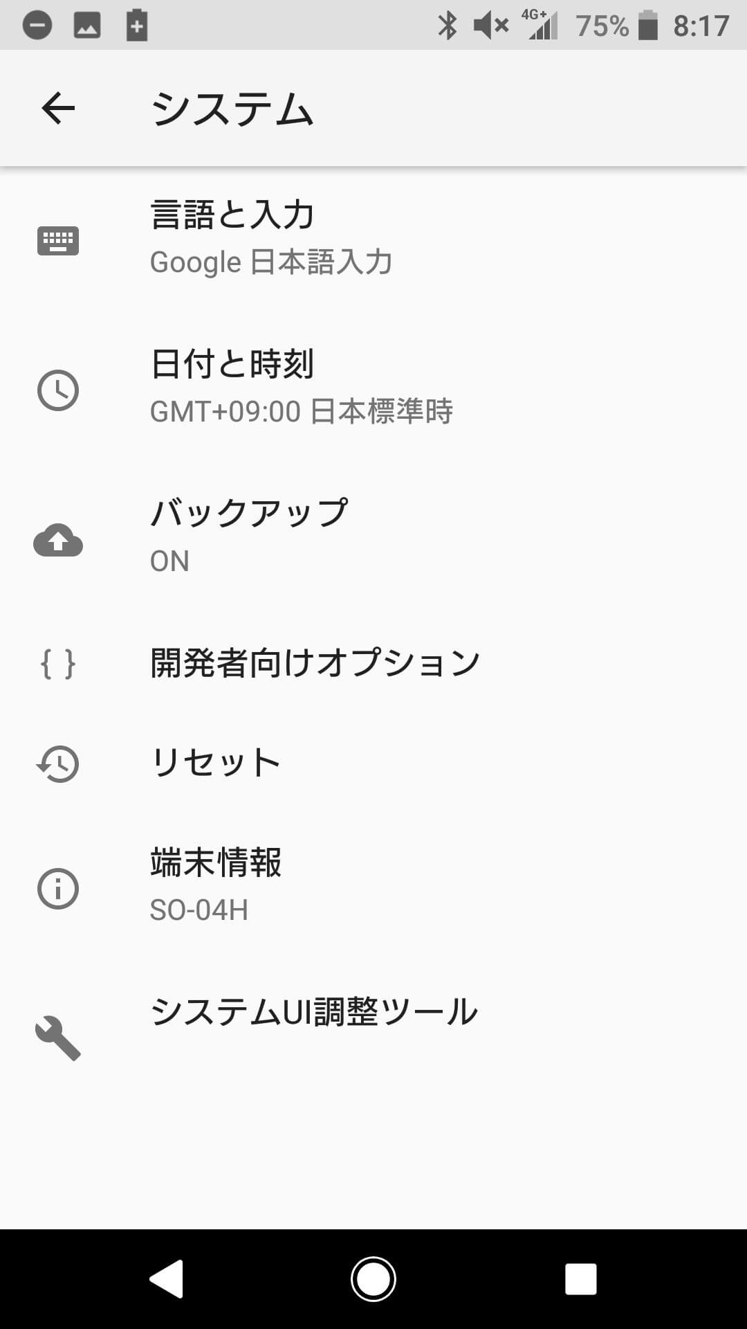 開発者オプションは、設定 → システム のところにあります。