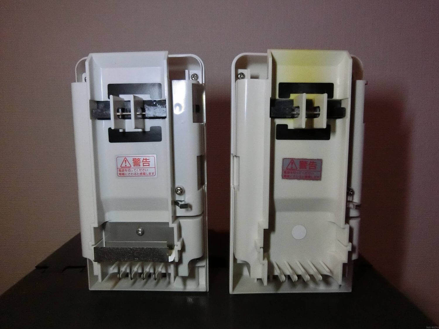 です。やはり、2年近く連続で動いているとプラスチックが黄ばんでいますね。いろいろな分解物がこびりついていたのでしょう。。。逆に2年、ほぼノーメンテナンスで使ってもずっと使えるということは非常に堅牢な製品だと思いませんか?私はかなり感心しました。