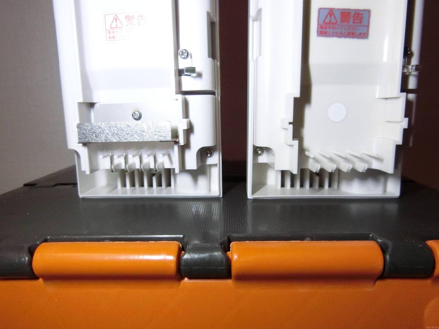 外観の違いはこちらのような感じです。大きさは同じですが、ところどころが違います。