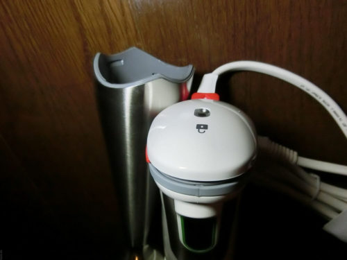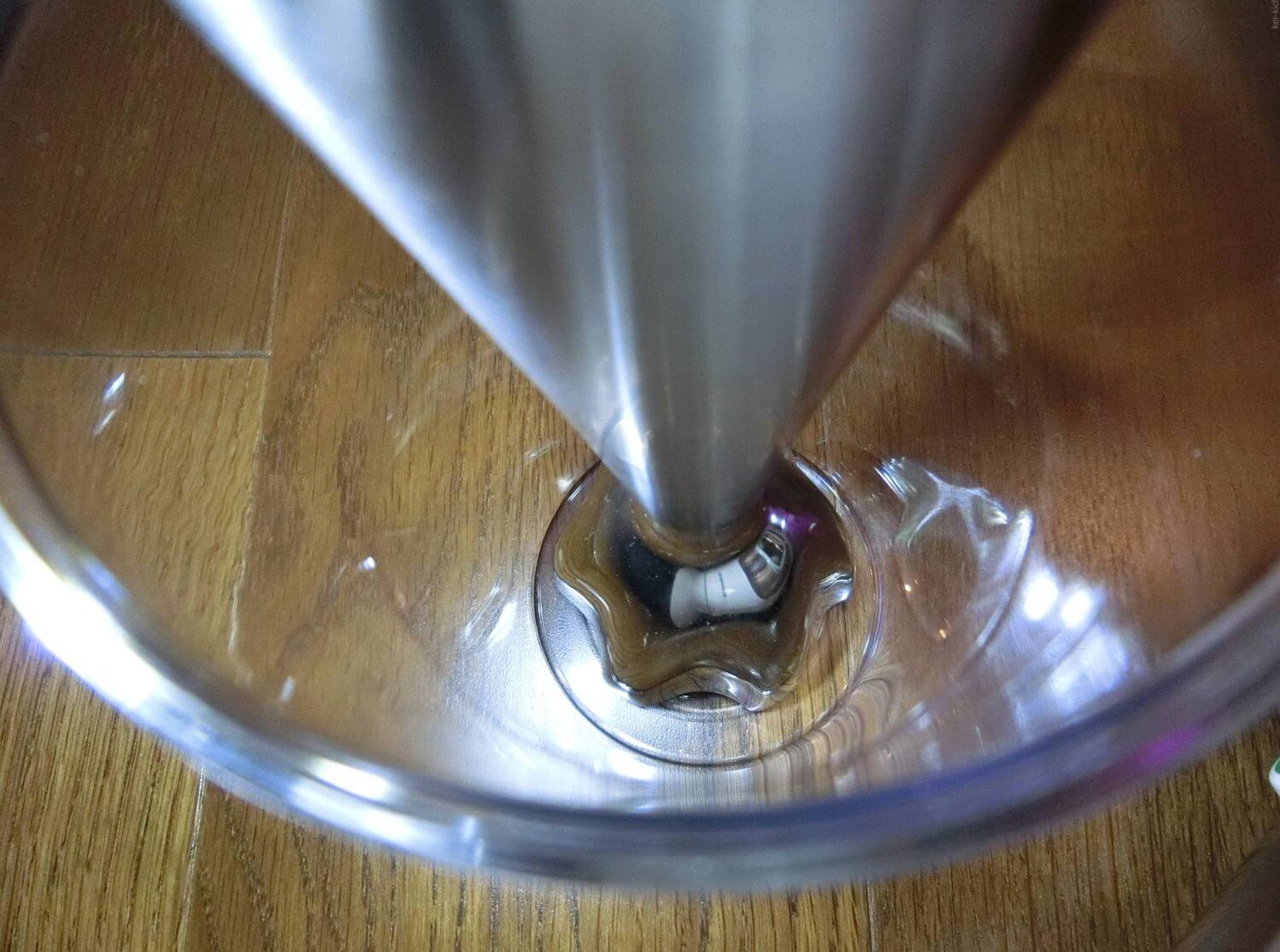ブレンダーの先端は直径6cmほどの大きさです。専用のカップとのサイズ感はこちら。