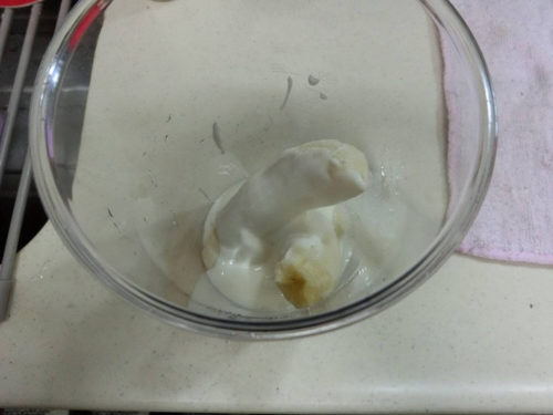 これにバナナちとヨーグルトを突っ込んで混ぜます。