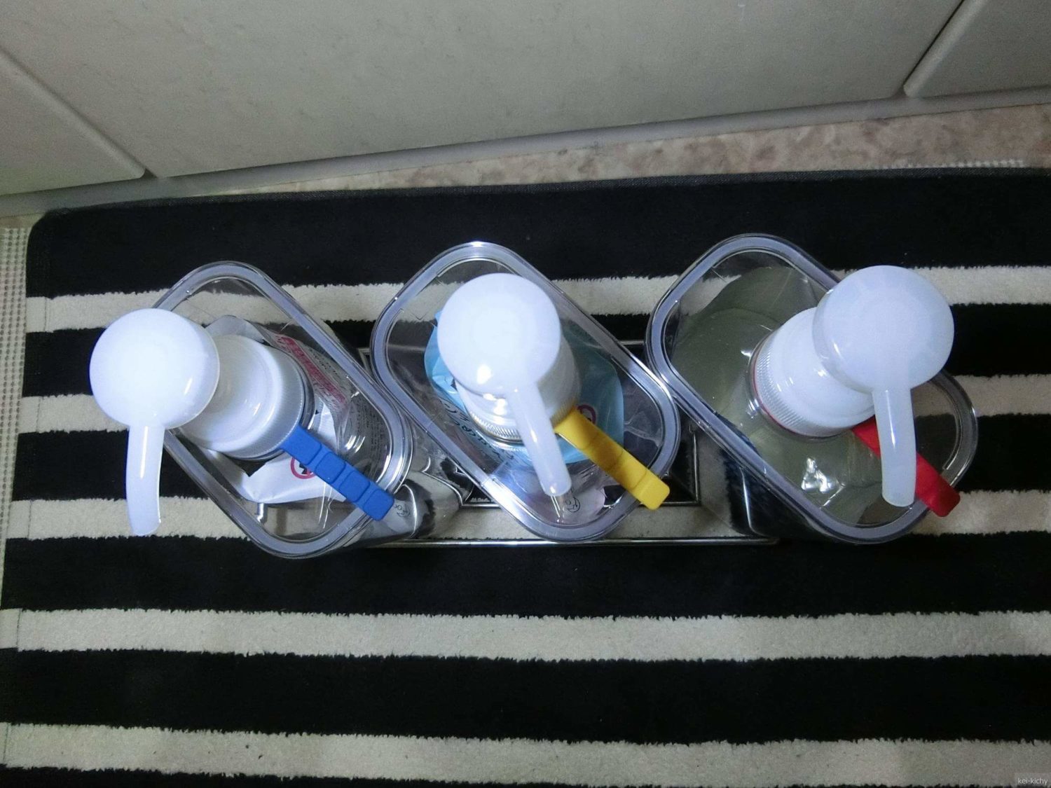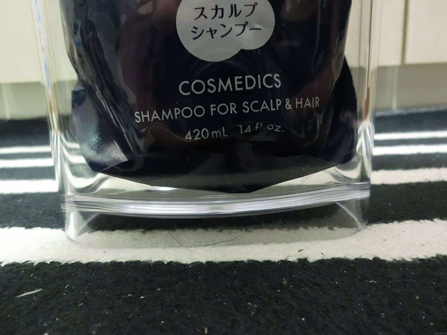 無印の詰め替えPETボトルの問題点は、意外と大きいという点です。今までボトル4本が余裕で乗っていたラックに3つギリギリしか乗りません。ラックに載せないと底がヌルヌルするので、譲れません。