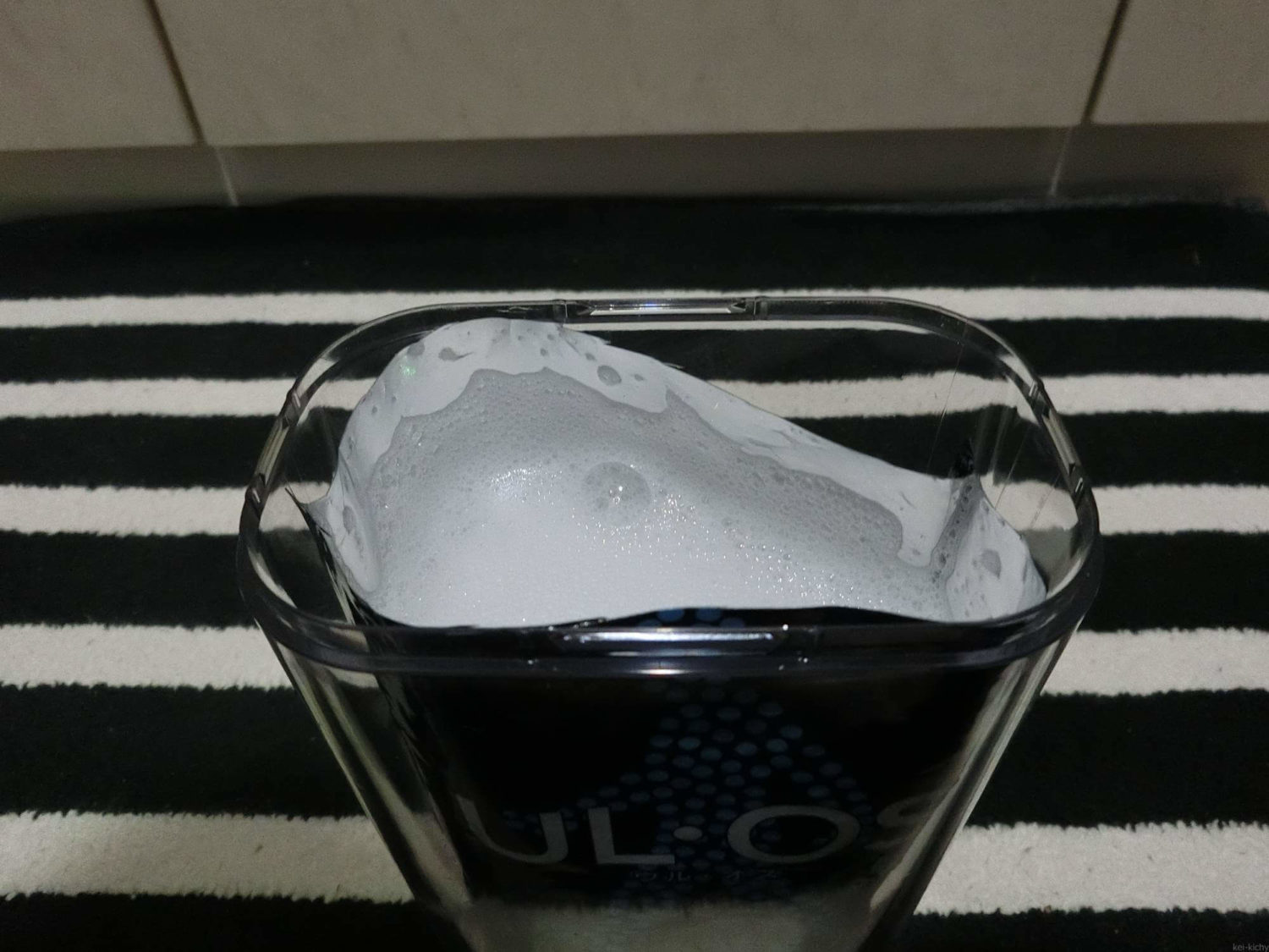 程よく切るとこんな感じの液面になります。余裕もあって少し動かしたぐらいでは零れなさそうです。