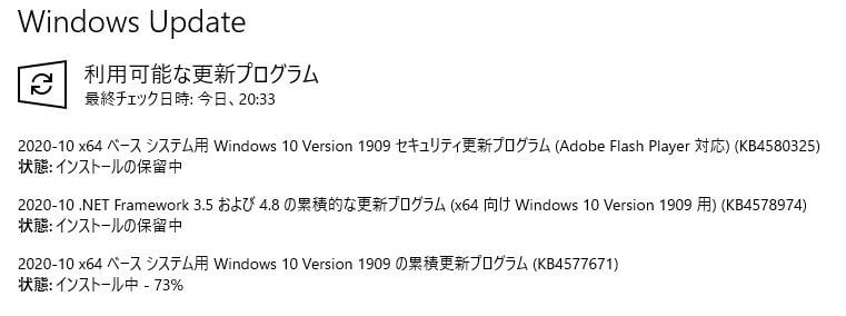 ちなみにバックグラウンドで動きますのでPC操作は出来ますが、アップデートの処理の優先度は落ちるので、PCに触らず放置する方が終わるのは早いです。せっかちな方は我慢の時ですね。