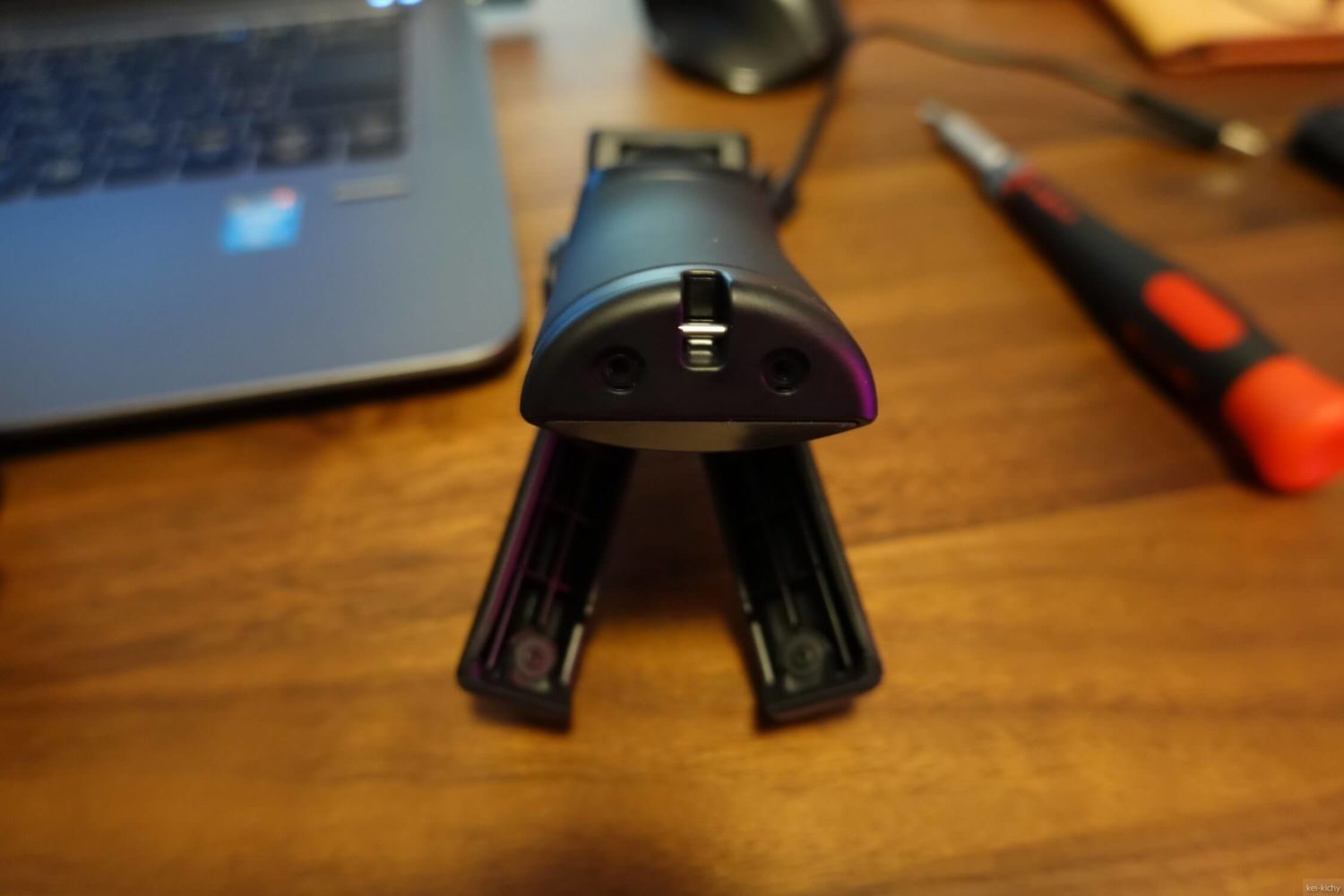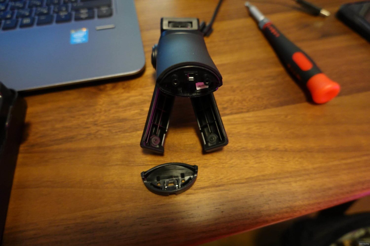 そして、構造的にストラップが付いている底の部分が分解できそうだったのでバラしました。すると案の定シンプルな構造!!