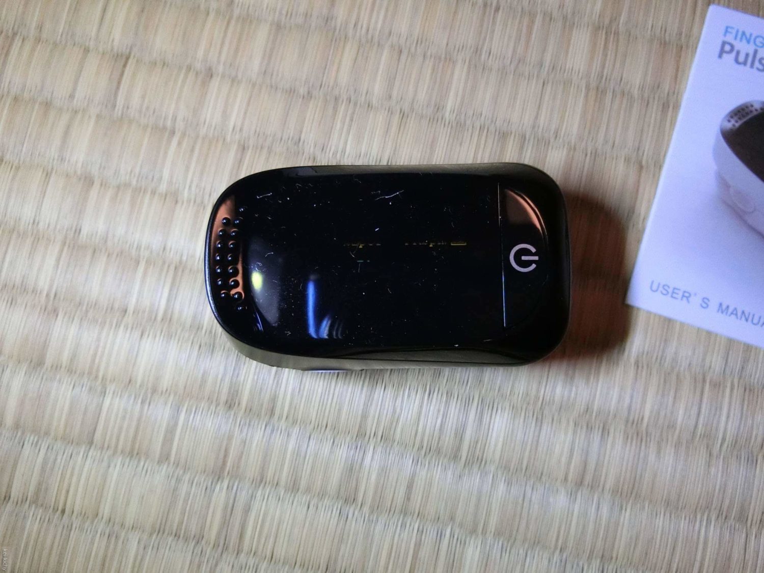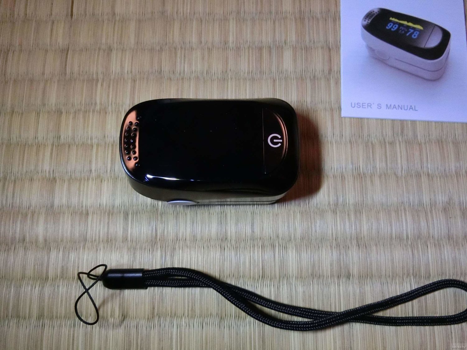 いただいたパルスオキシメーターがこちら。ソフマップとかの端っこの方で売ってそうなパッケージです(要するに安っぽいと)。