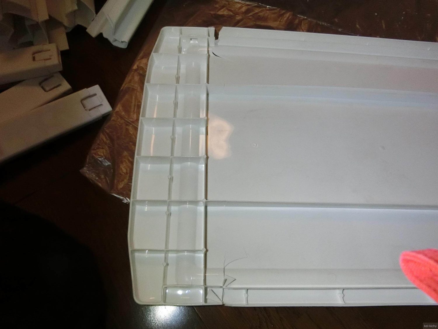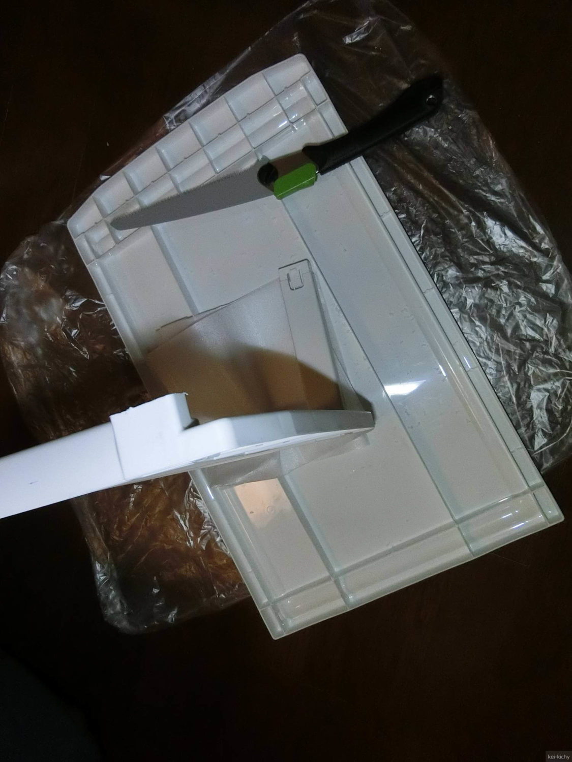 強度を上げるために仕切りが付いていると思いますが、切りたいなと思うライン上の仕切りには切れ目を入れておきます。