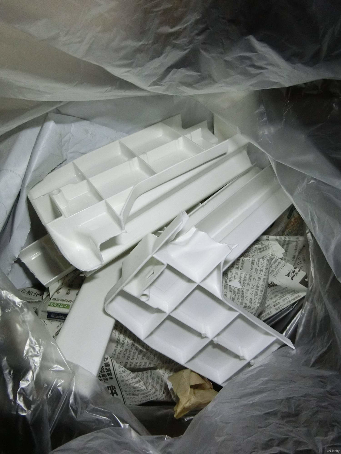 私の場合、ボックス6個を処分したので、かなりの重労働になってしまいましたが、無事に回収されていきました。規定を見ると最大長さが50cmとのことなので、もう少し長めに切っても回収していってもらえるようですが、まあ、運ぶのも大変ですし、袋詰め出来た方がいいということで30cm角にしました。
