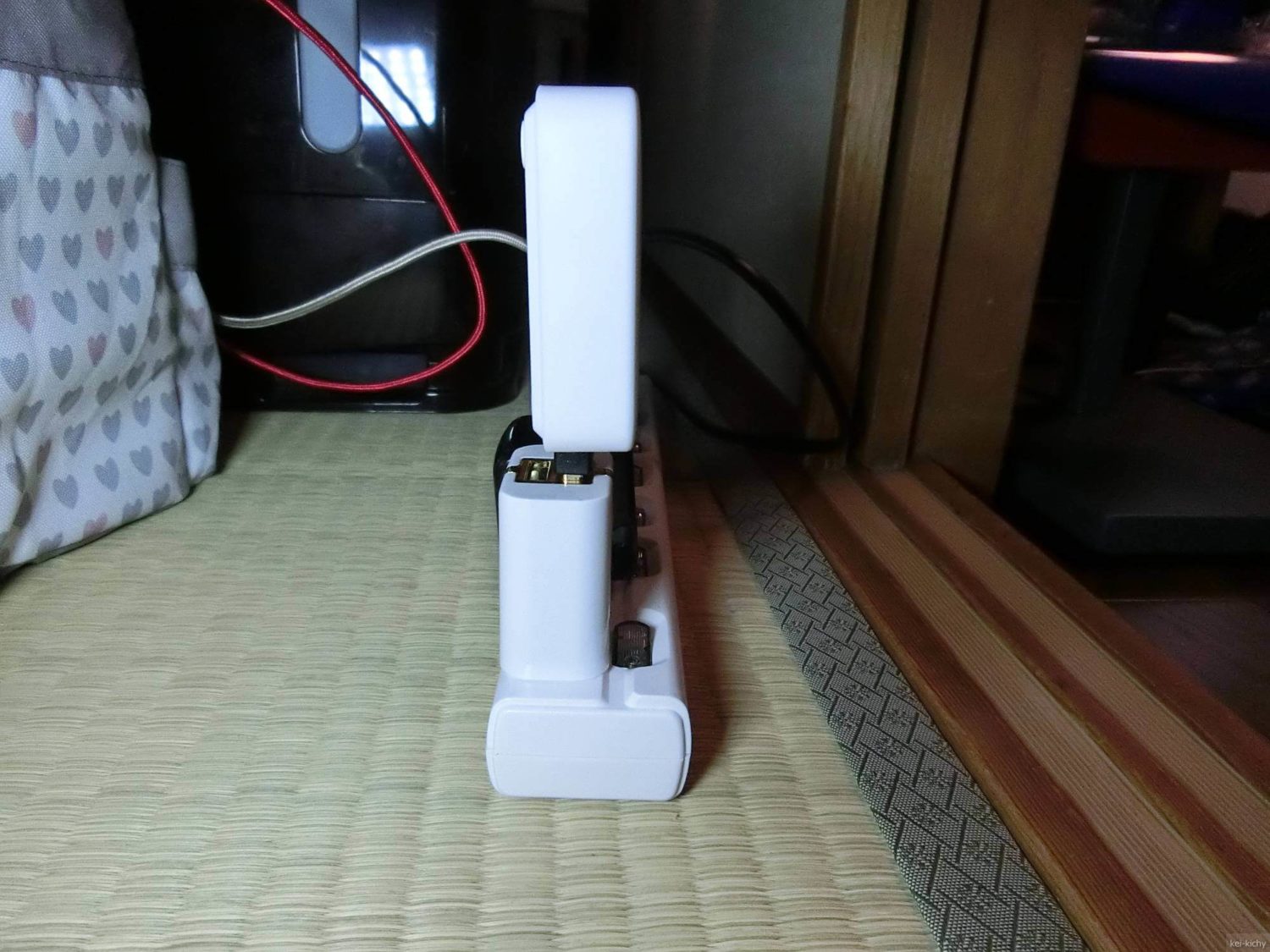 SwitchBotって便利なんですが、USB充電器からの給電で、床置きの場合、コードが余って邪魔という欠点があります。