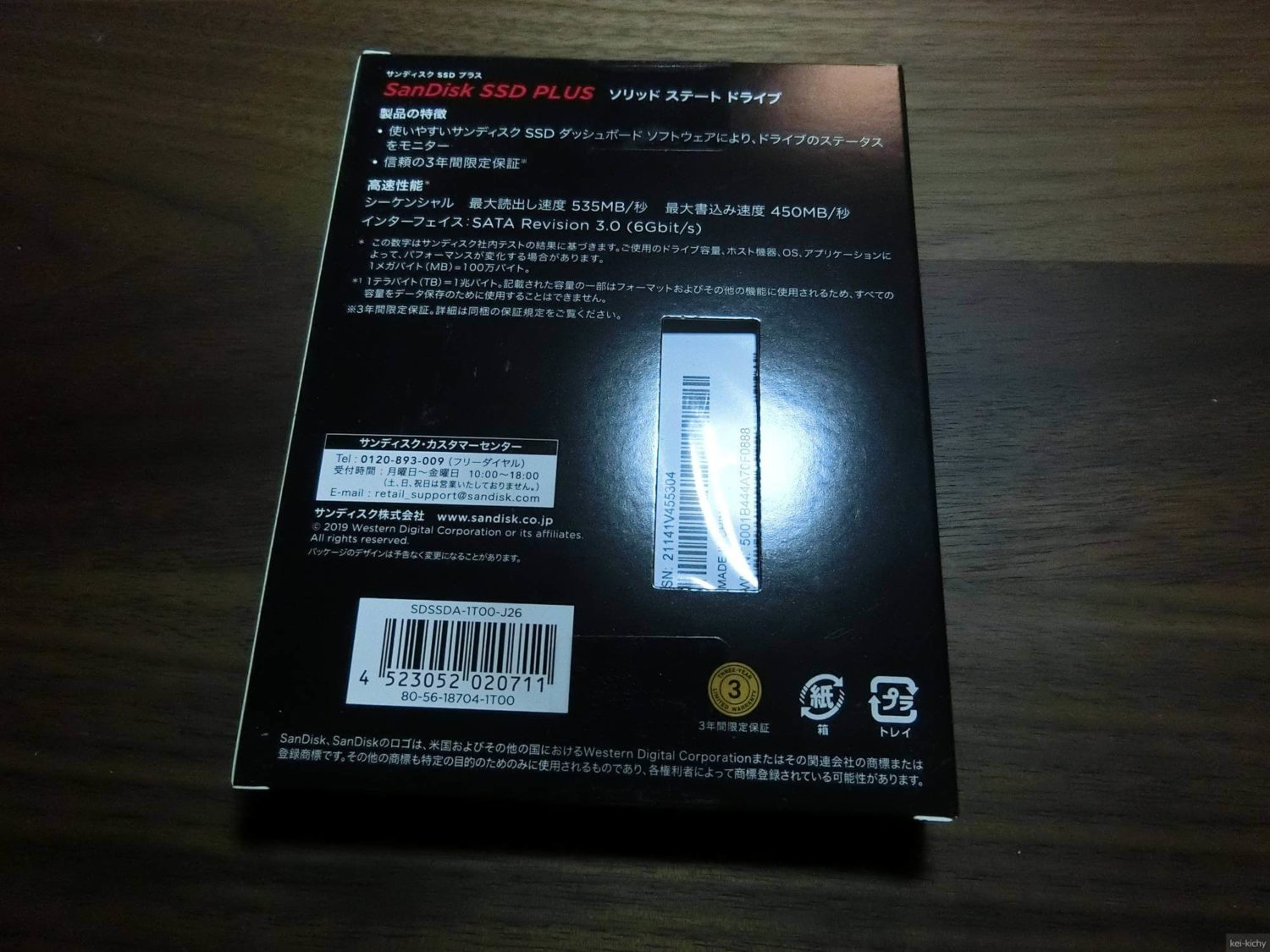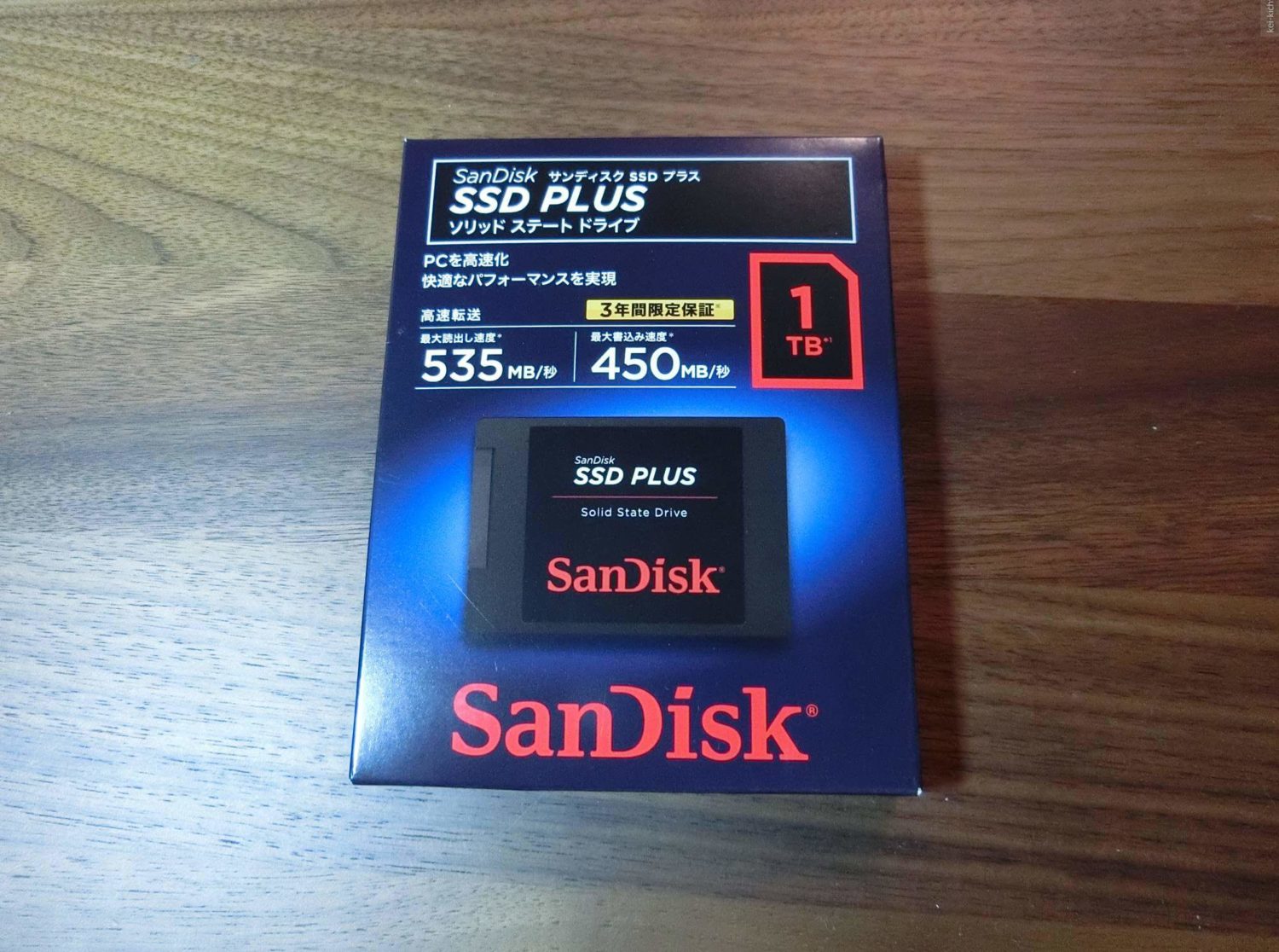 今回購入したSSDはSandiskのSSD PLUS 1TBモデル(品番:SDSSDA1T00J26)です。