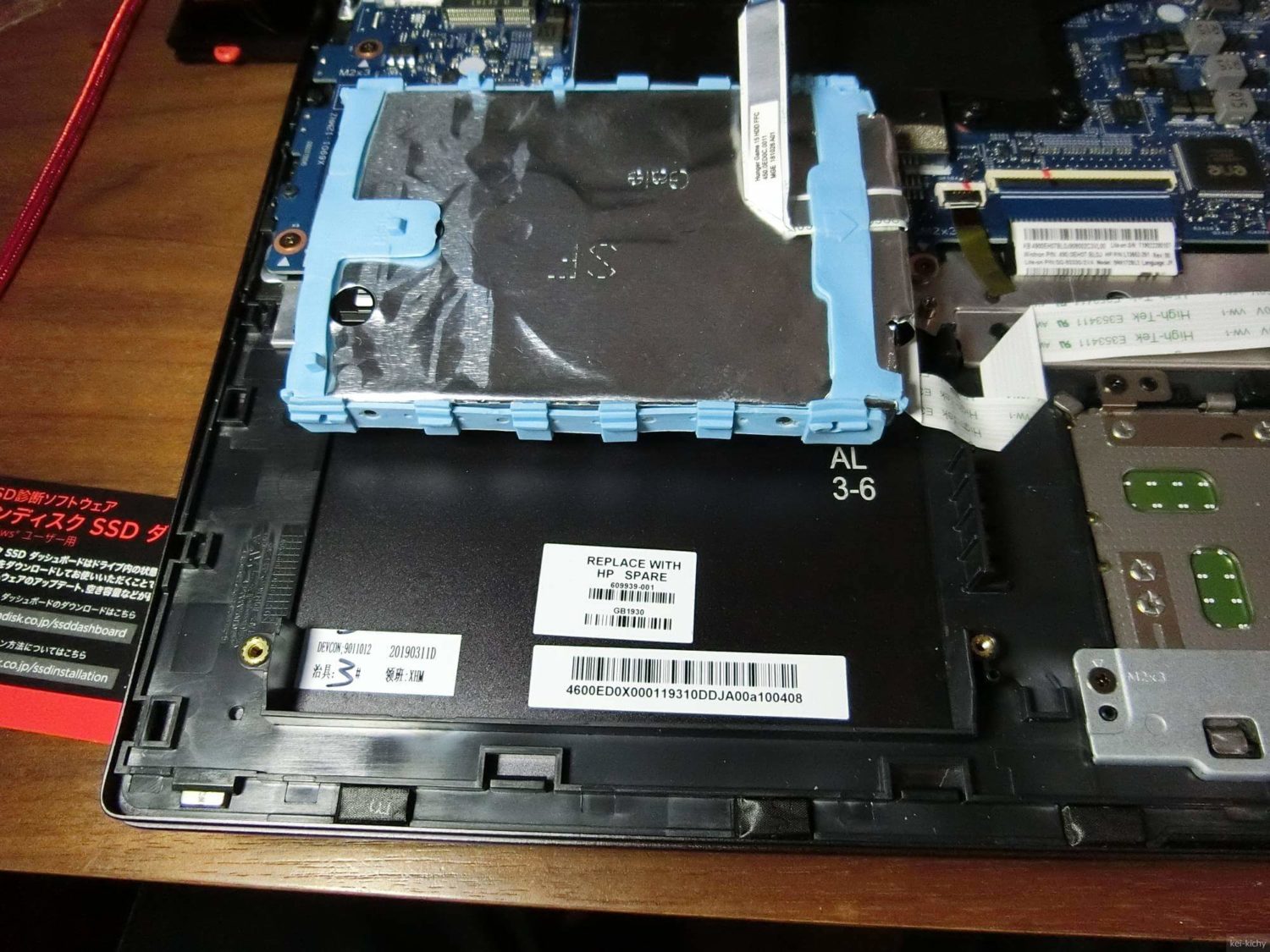 【DIY】HP ENVYのHDDのSSD換装(+バッテリーの膨張を発見)