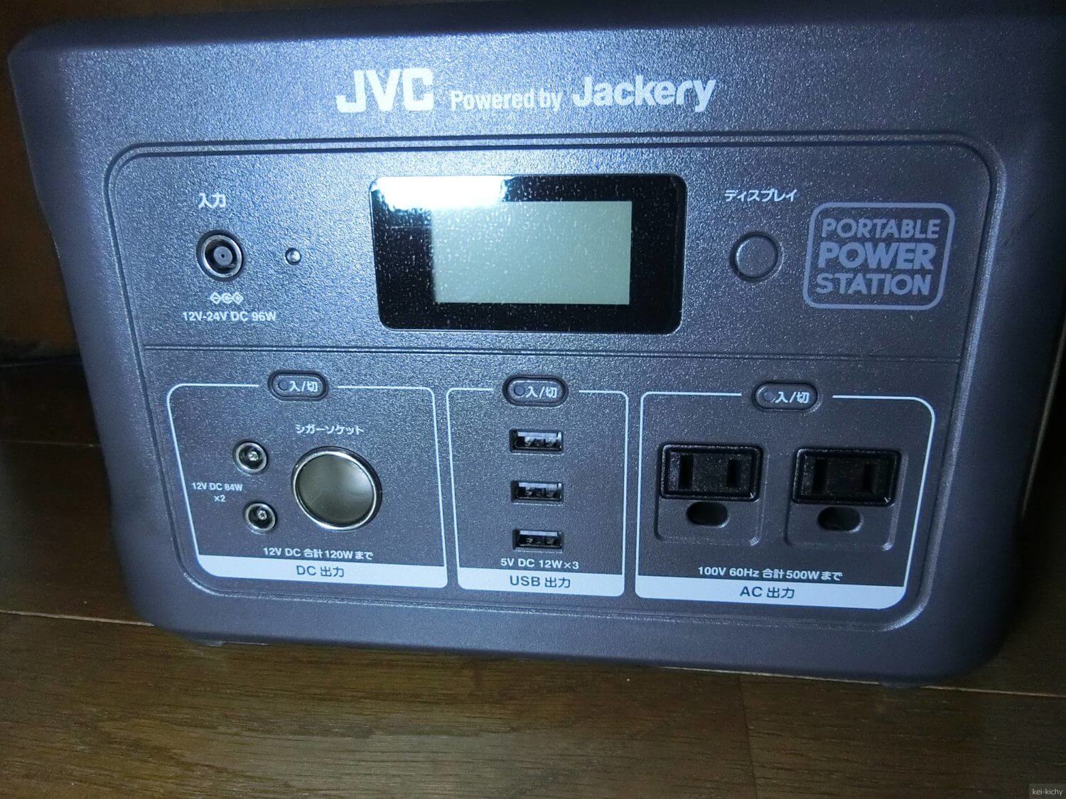 アウトプットは充実しており、いろいろな用途が考えられます。100Vコンセント、USB-Type-A、シガーソケットの3WAY電源で、出力500W(瞬間最大1,000W)という感じなので、ポットなども十分使えるのではないでしょうか。
