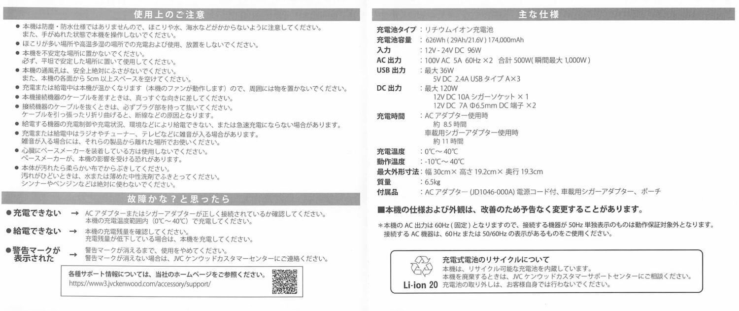 JVCケンウッド ポータブル電源 BN-RB6-C