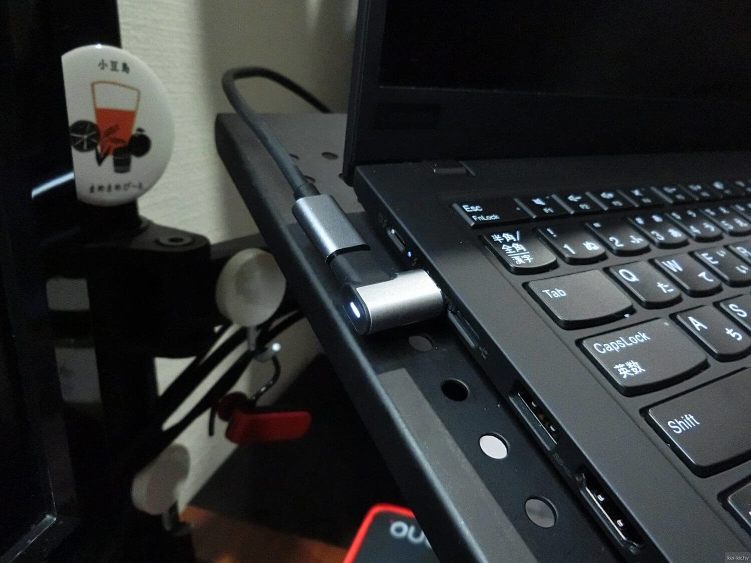 USB-Aは本体に固定されており取り外しできないタイプ。この辺りは好みによりますが、私はケーブルの長さを調節したい派なので、取り外しできるタイプがよかった気もしますが、接触不良による不具合の原因ですので、メーカーとしては基本的に取り外しできないタイプにする方針なのでしょうね。