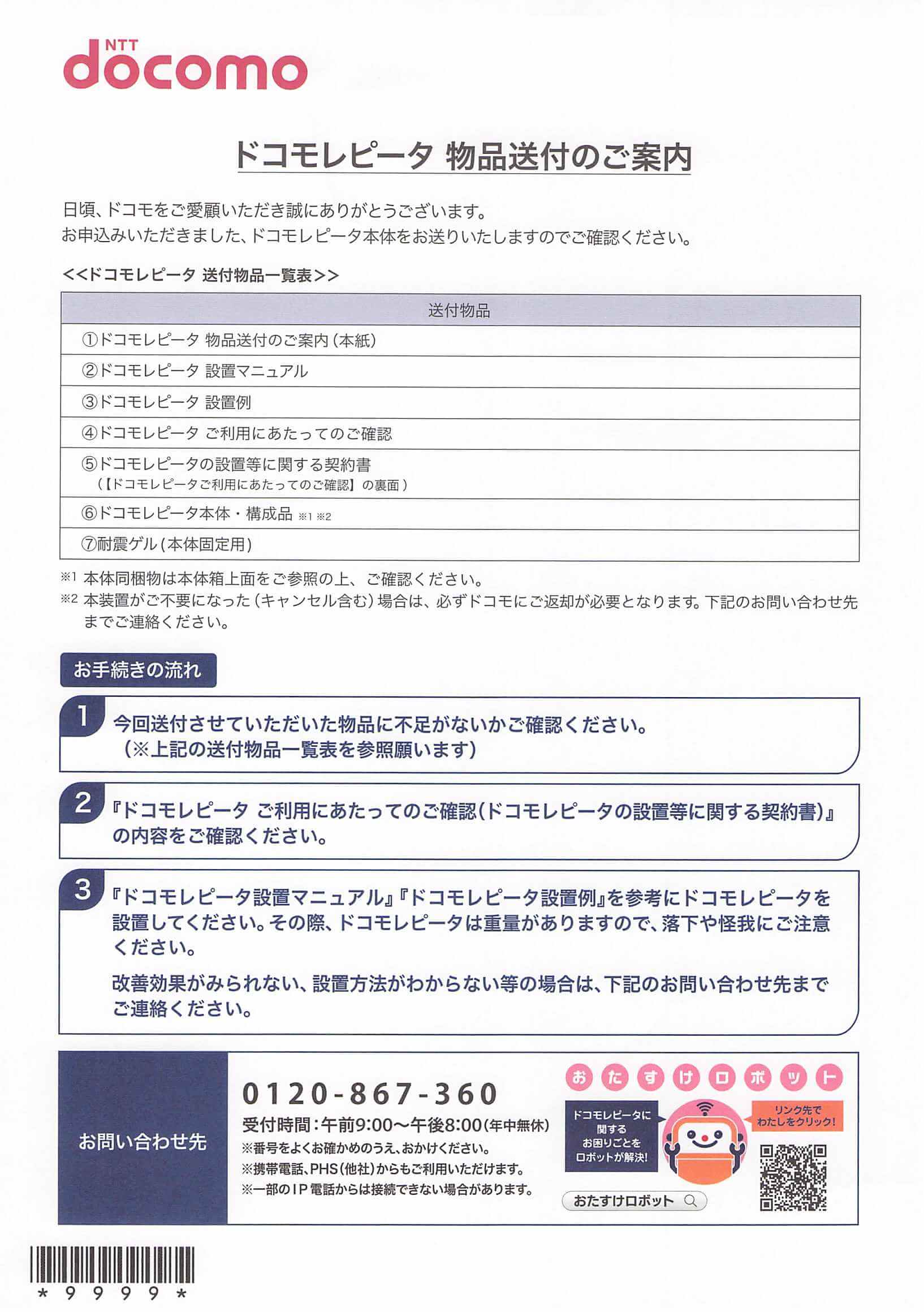 そこで、電波状況改善の一手として紹介されていた無料のレピーターを申し込んでみました。