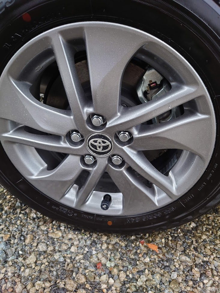 シエンタの純正ホイールに装着したところ、こんな感じです。頭デッカチなのでやや目立ちます。
