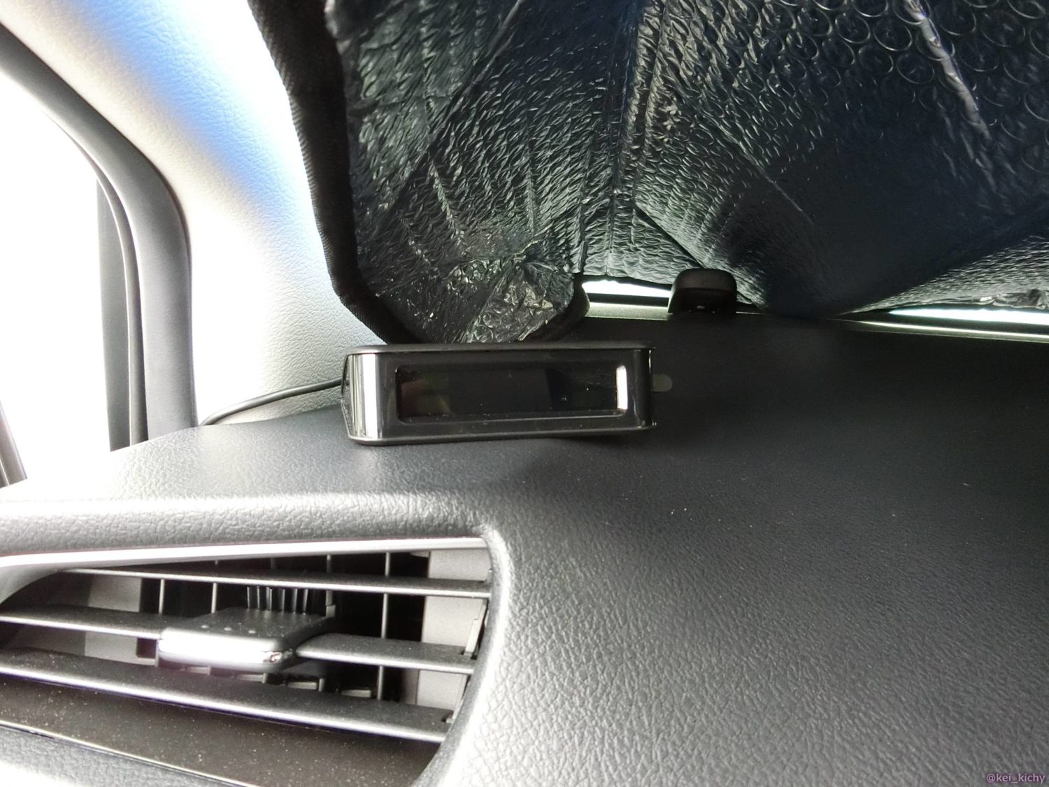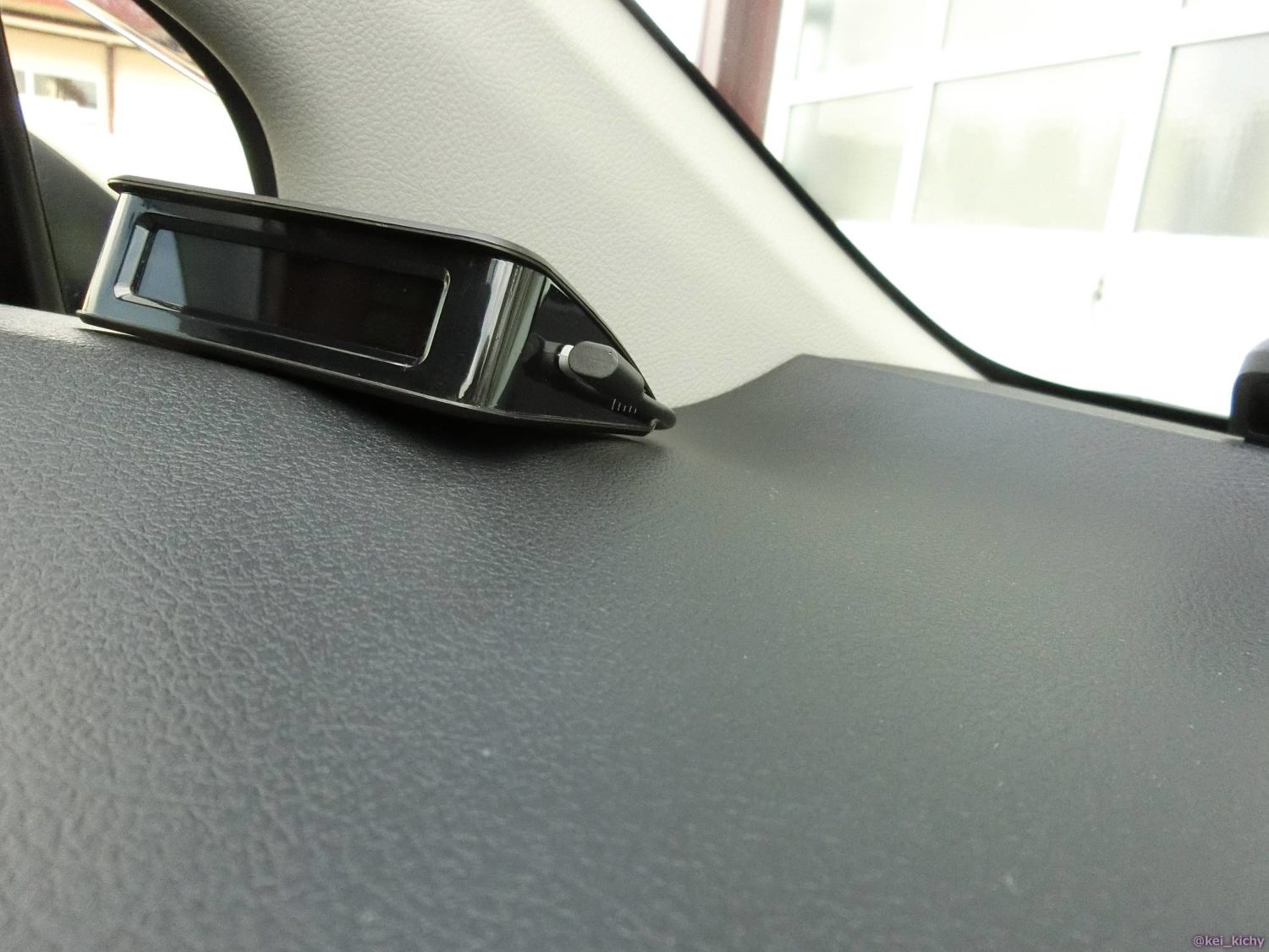 私の場合、左端のダッシュボードとAピラーの隙間から出しました。