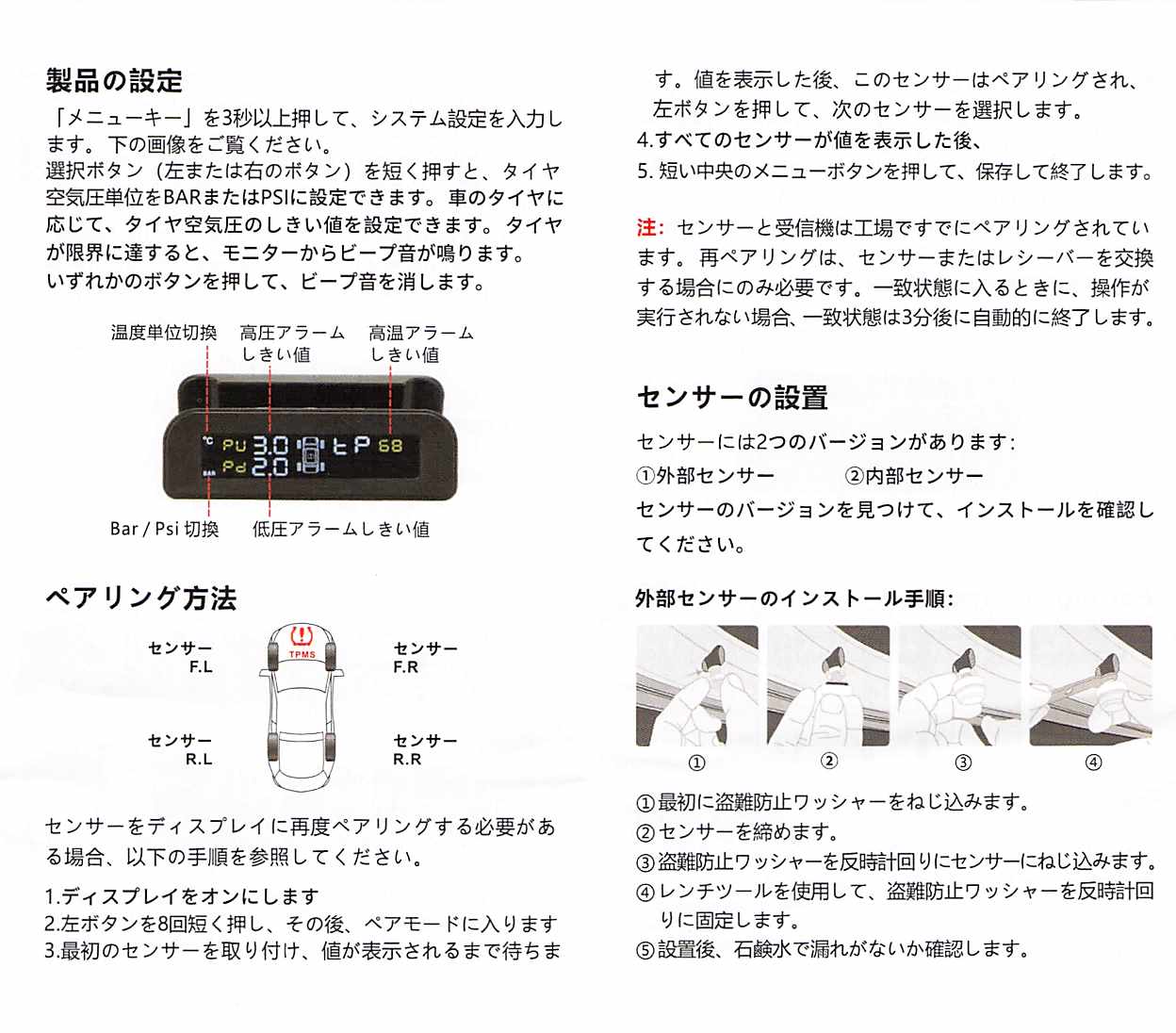 タイヤ空気圧モニタリングシステム(TPMS)
