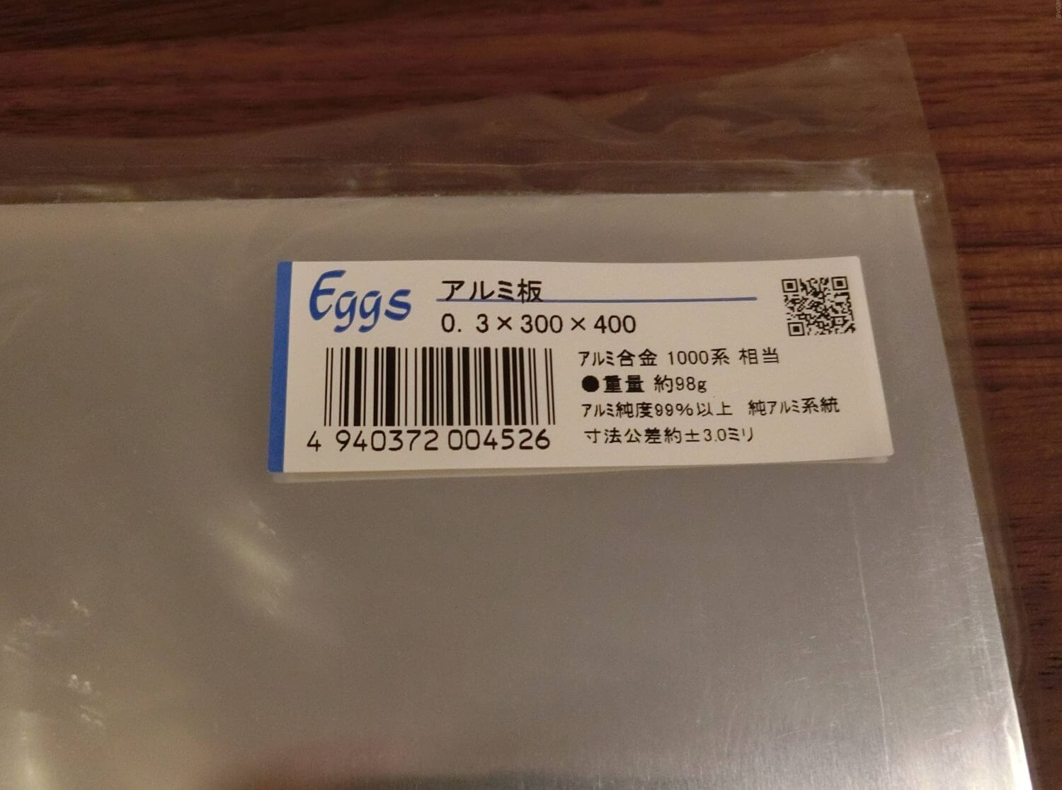 厚さ0.3mmのアルミ板を購入してきました。加工のしやすさと熱伝導を考慮してアルミにしました。