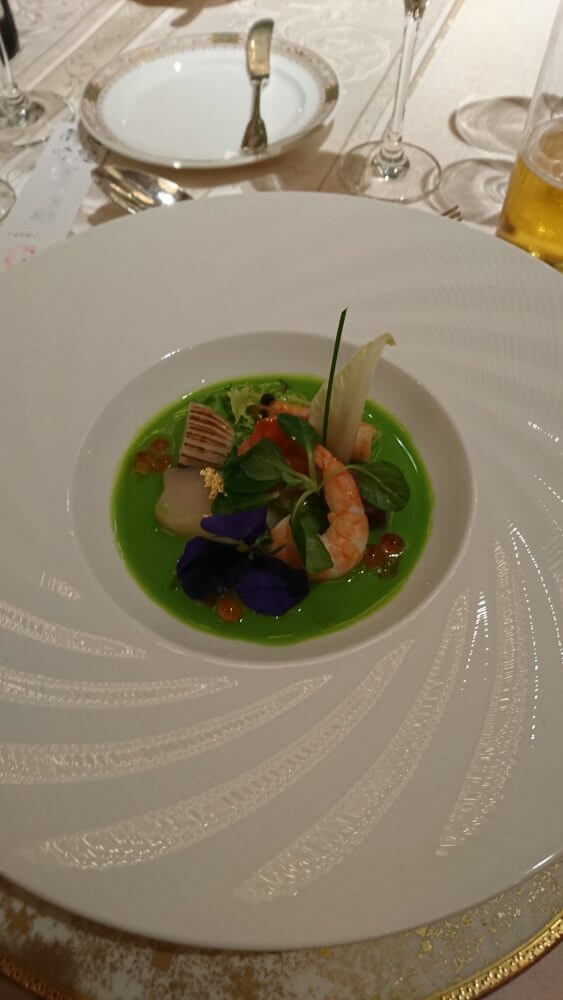 横浜ロイヤルパークホテルはこの「ブルーテポテトにのせた海の幸と彩り野菜の宝石箱」に自信があるようで、紹介VTRも作成しており、食事中に上映されていました。たしかに美味しく、宝石箱でした。