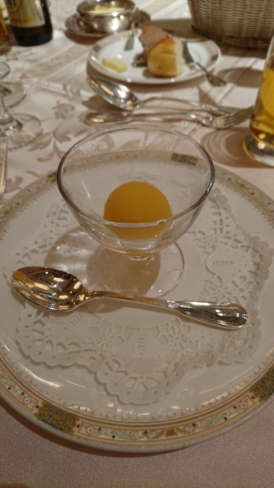 そして、おいしかったです。フォアグラとの相性も抜群でした。右側のオレンジのものは、ニンジンです。