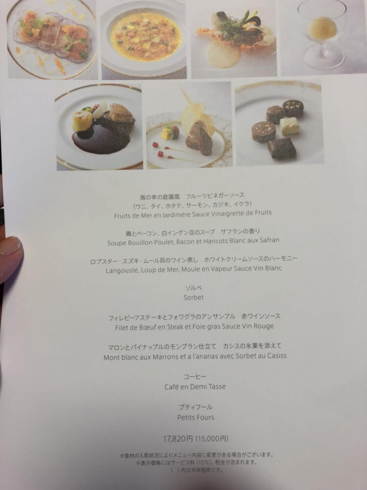 横浜ロイヤルパークホテル 結婚式料理 フランス料理の一覧を記載しておきます。